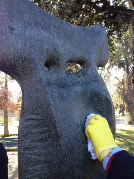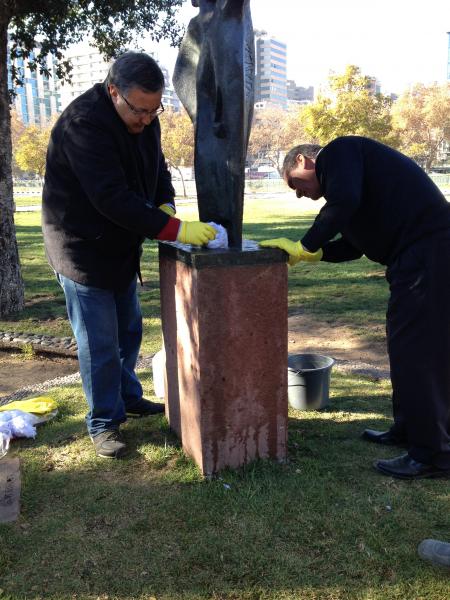 Profesionales del Laboratorio de Escultura y Monumentos del Centro Nacional de Conservación y Restauración realizaron una capacitación en conservación y mantenimiento de esculturas en espacios públicos y abiertos. Actividad dirigida a los funcionarios del Parque de las Esculturas perteneciente a la Ilustre Municipalidad de providencia.