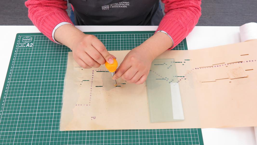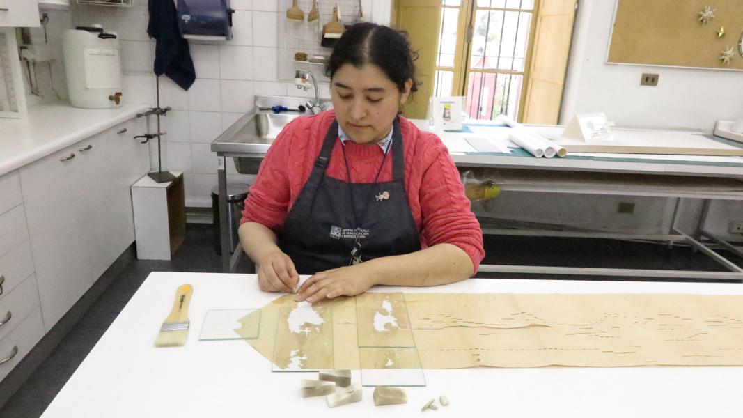 Debido a la extrema fragilidad del soporte de papel y a la complejidad de su mecanismo, las especialistas de la Unidad de Patrimonio Gráfico y Documental (UPGD) han implementado un riguroso protocolo de intervención basado en el criterio de mínima intervención.