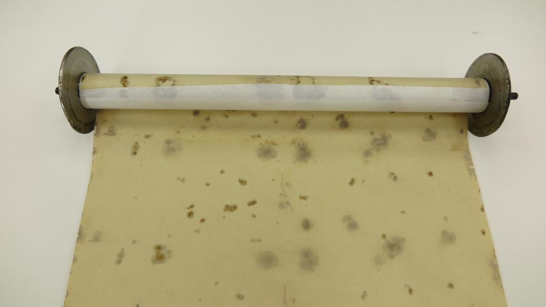 Rollo de pianola extendido (Museo Regional de Atacama) (Quiroz, M.; Ledezma, L. 2025. Archivo CNCR).
