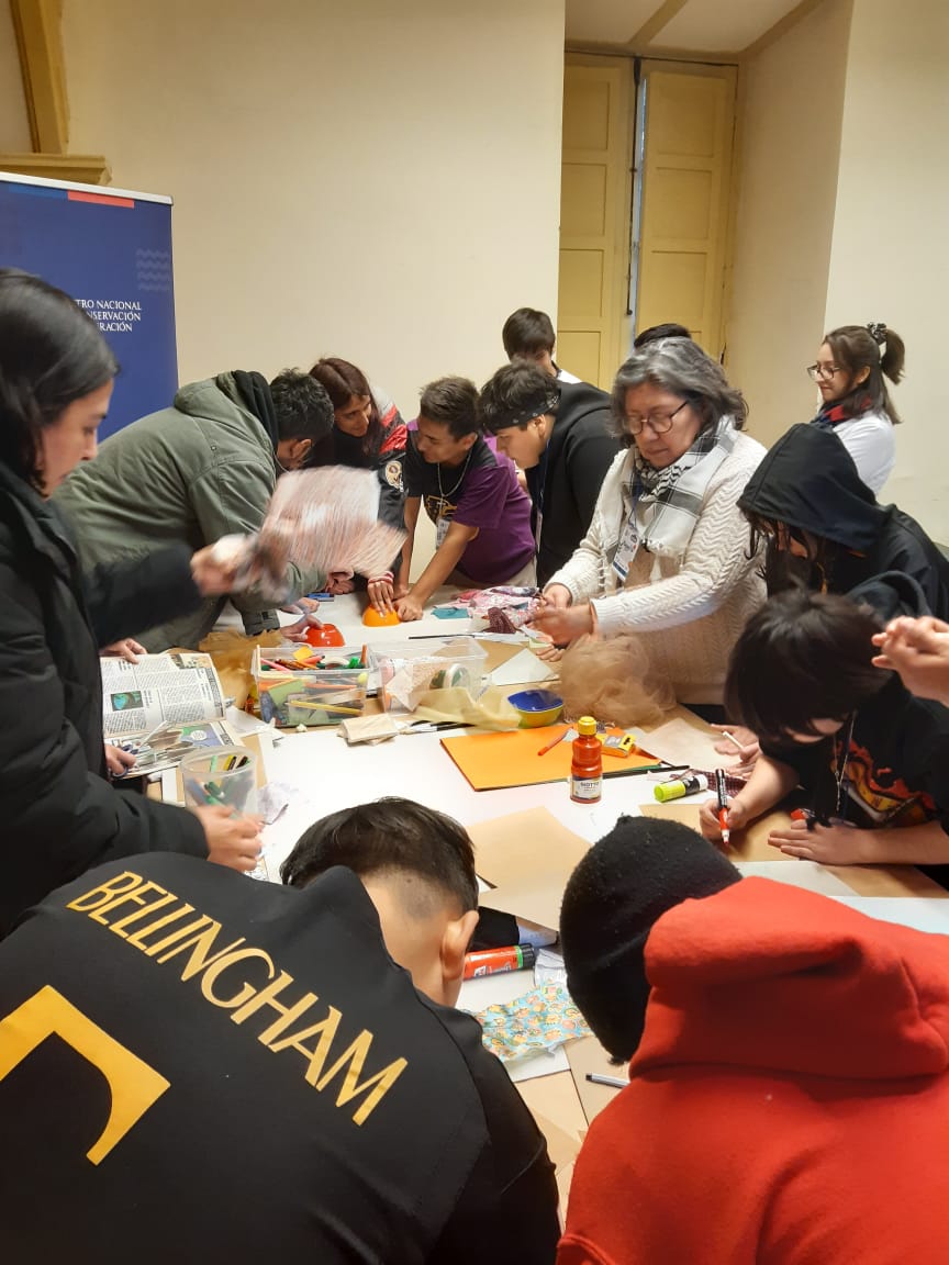 La jornada terminó con una actividad de creación colectiva a cargo de Bárbara Reyes Trujillo de la Unidad de Patrimonio Arqueológico y Etnográfico, allí los estudiantes, profesores y profesionales de Explora RM Norte, MVP y equipo CNCR pudieron crear de forma participativa al estilo Violeta, como una forma de contribuir a la valoración de su obra.