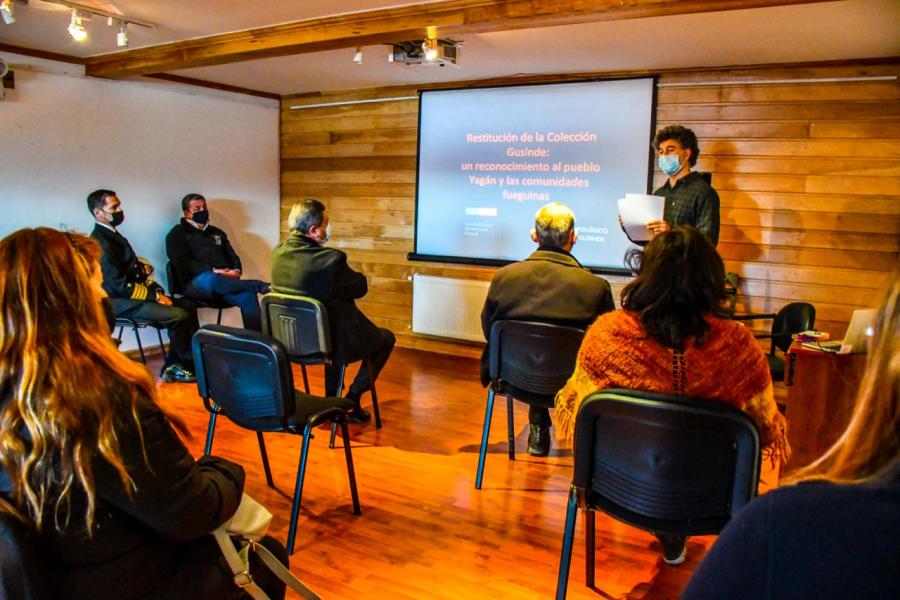 Este proceso de restitución de la colección Gusinde al territorio de isla Navarino, parte central del Usi Yagán (territorio yagán) es resultado de un proceso de reivindicación de la Comunidad Indígena Yaghan de Bahía Mejillones, que contó con la colaboración del Museo Antropológico Martin Gusinde y la Subdirección Nacional de Pueblos Originarios del Servicio Nacional del Patrimonio Cultural, Serpat.