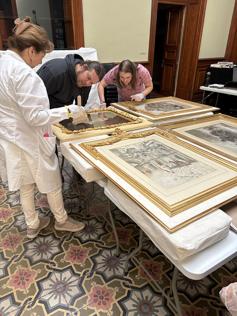 Acondicionamiento de obras bidimensionales del Museo Regional de Magallanes (Pardon, F. 2025. Archivo MRM).