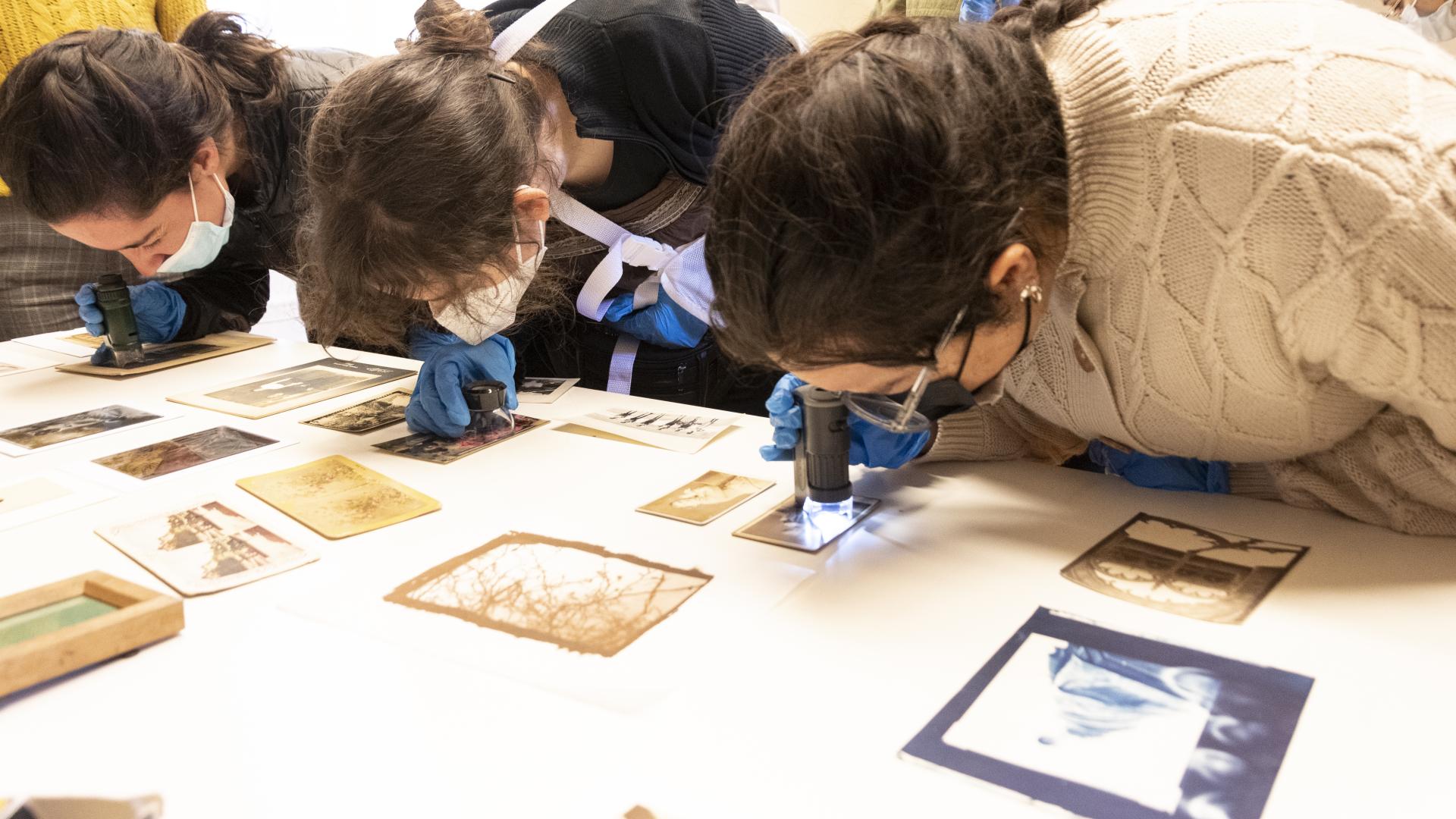 Ejercicio de identificación de técnica fotográfica utilizando microscopio portátil (Pérez, T. 2022. Archivo CNCR).