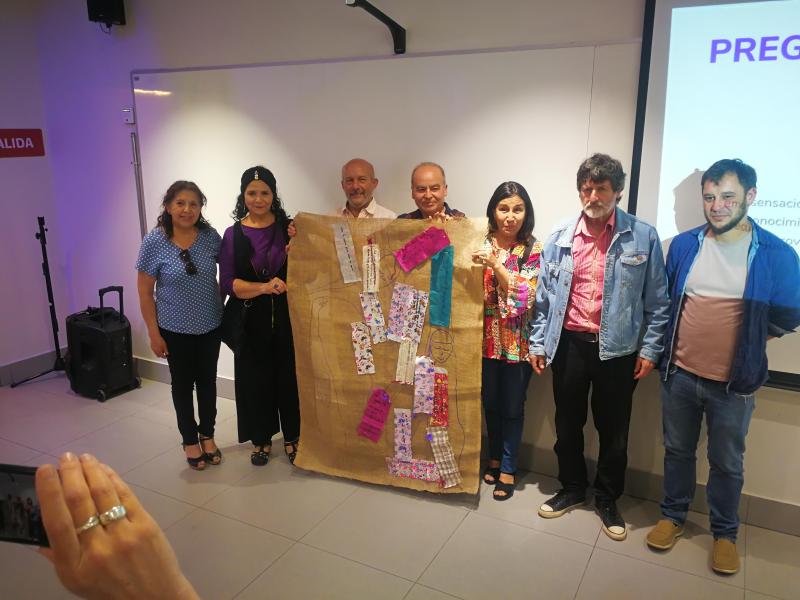Finalmente a las personas asistentes se les entregó arpilleras que tenían la silueta de Justice, hechas con telas, lanas, y otros materiales. En paralelo se les plantearon 3 preguntas, las que respondieron sobre los retazos de tela y los bordaron sobre la arpillera. Las personas estaban muy interesadas en responder y reflexionar acerca de estas preguntas, pero también de incorporar esos pedacitos de tela en las arpilleras. Hicimos un cierre donde cada grupo pudo contar sus impresiones y respuestas a estas preguntas. Fue emotivo”, comenta la jefa de la UCC.